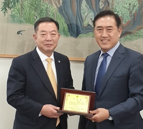 | ▲이찬열 의원(사진 왼쪽)이 15일 대한민국교육문화체육공헌대상의 대회장에 취임했다. |