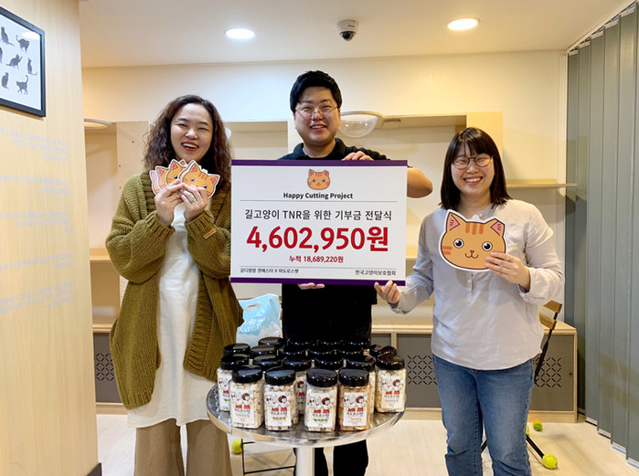 해당 기부금은 3월 양재 aT센터에서 개최된 국내 최대의 고양이 박람회 ‘제10회 궁디팡팡 캣페스타(주최 캣페스타)’를 통해 모금된 것으로, 박람회에서 고양이 동결 건조 식품 전문 기업 마도로스펫과 함께 진행한 ‘해피컷팅 프로젝트’와 ‘고양이학원 세미나’ 수익금을 모은 것이다.