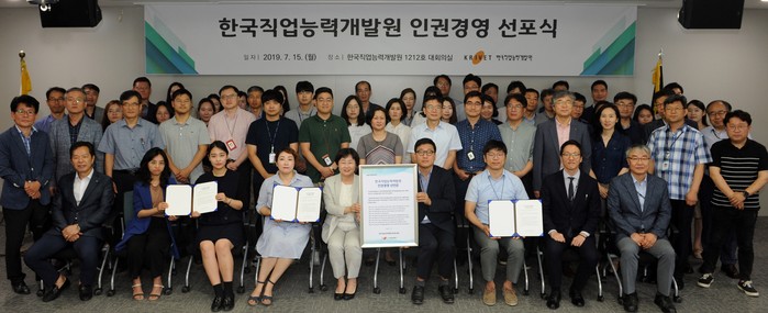 한편 한국직업능력개발원은 이번 선포식에 앞서 인권경영 규정을 제정하고, 인권경영위원회를 발족시키는 등 인권경영의 제도적 기반을 마련한 바 있다.